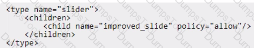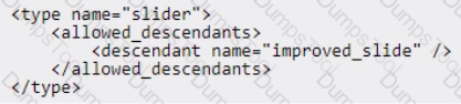 An Adobe Commerce developer has been asked to modify the PageBuilder slider content type to allow a new custom content type (other than slide) to be assigned as a child. The developer has already created the new content type called improved_slide in their module. They now need to create a new view/adminhtml/pagebuilder/content_type/slider. xml file in their module to allow the new content type to be a child of slider content types.