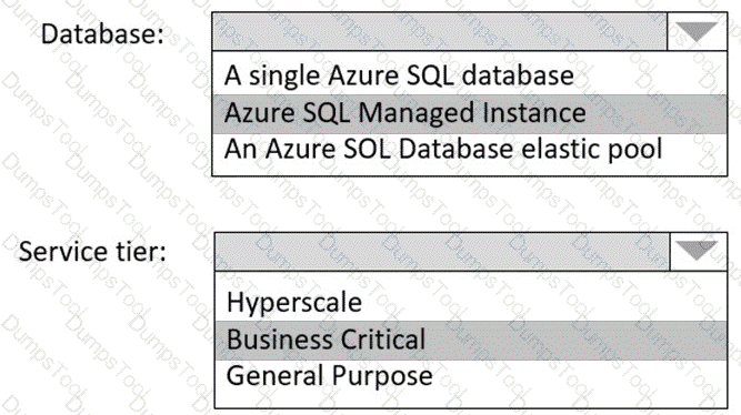 How should the migrated databases DB1 and DB2 be implemented in Azure?