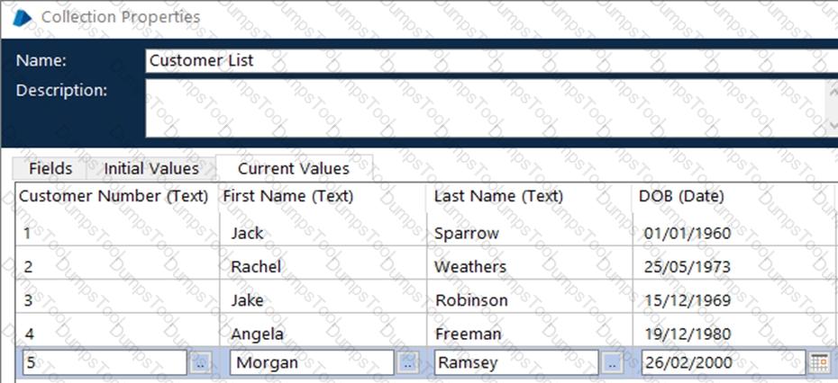 Review the Action flow below which loops through the Customer List Collection until the relevant customer match is found, and then uses the ‘Set DOB’ Calculation stage to copy the value from the Collection column ‘DOB’, to the DOB data item:
