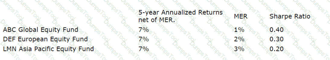 Karen’s know your client (KYC) profile corresponds to someone who has a long time horizon, is comfortable with risk and volatility, and is primarily interested in growth. She watches the daily movements of the Toronto Stock Exchange (TSX) and wants a mutual fund that will closely match what she sees.
