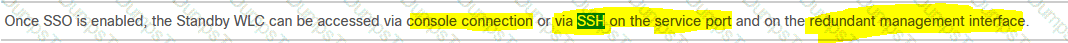 An engineer has successfully configured high availability and SSO using two Cisco 5508 Wireless LAN Controllers. The engineer can access the Active Primary WLC, but the Secondary Standby WLC is not accessible. Which two methods allow access to the standby unit? (Choose two.)