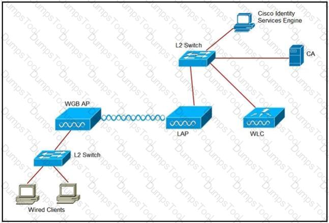 An engineer must connect a fork lift via a WGB to a wireless network and must authenticate the WGB certificate against the RADIUS server. Which three steps are required for this configuration? (Choose three.)