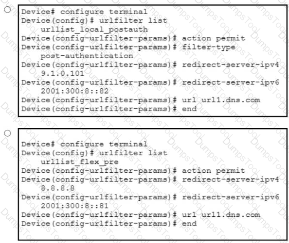 A network administrator of a school district must implement a DNS-based ACL to block students from accessing certain teacher URLs where test papers are hosted. The infrastructure contains a Cisco Catalyst 9800 WLC with 25 9136 APs. The administrator configured the URL Filter List called urllist_flex_pre, applied the URL Filter List to the default Flex Profile, and defined Preauth called urllist_local_preauth and Postauth called urllist_local_postaut URL Filter List. Which configuration must the administrator apply to implement the ACL on the default policy profile?