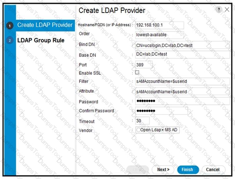 Refer to the exhibit. A network engineer configures an authentication domain through an LDAP provider on the Cisco UCS Manager for users from different companies to log into their respective organizations created in the UCS Manager. The engineer tests the configuration and notices that any user has login access to any organization in the UCS Manager. Which action should be taken to resolve the issue?