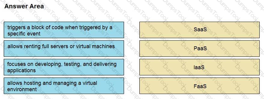 Drag and drop the cloud computing service descriptions from the left onto the cloud service categories on the right.