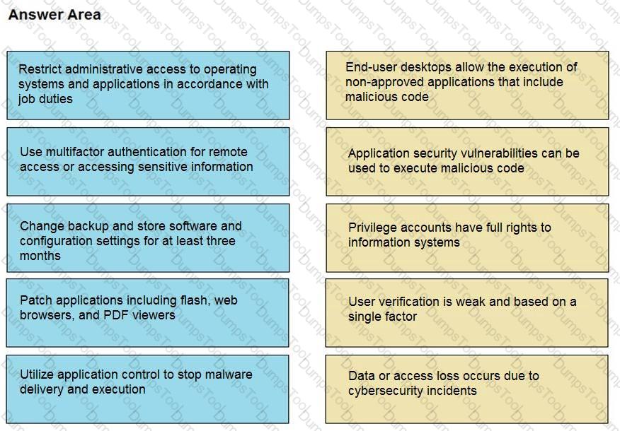 Drag and drop the threat from the left onto the scenario that introduces the threat on the right. Not all options are used.