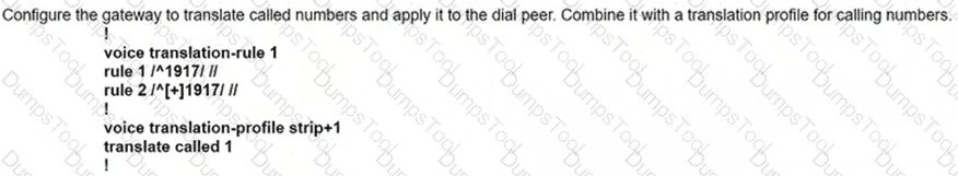 When a call Is delivered to a gateway, the calling and called party number must be adapted to the PSTN service requirements of the trunk group. If a call is destined locally, the + sign and the explicit country code must be replaced with a national prefix. For the same city or region, the local area code must be replaced by a local prefix as applicable. Assuming that a Cisco UCM has a SIP trunk to a New York gateway (area code 917). which two combinations of solutions localize the calling and called party for a New York phone user? (Choose two.)