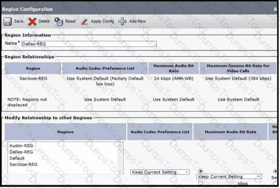 Which codec should an engineer select for a call made between "Dallas-REG' & "Austin-REG'?