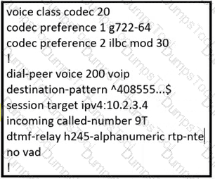 Refer to the exhibit. An administrator configured a codec preference list with 0,122 and ILBC codecs. Which change must the administrator make in the dial-peer section of the configuration to use this list?