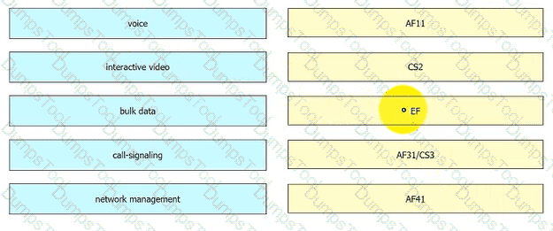 According to the QoS Baseline Model, drag and drop the applications from the left onto the Per-Hop Behavior values on the right.