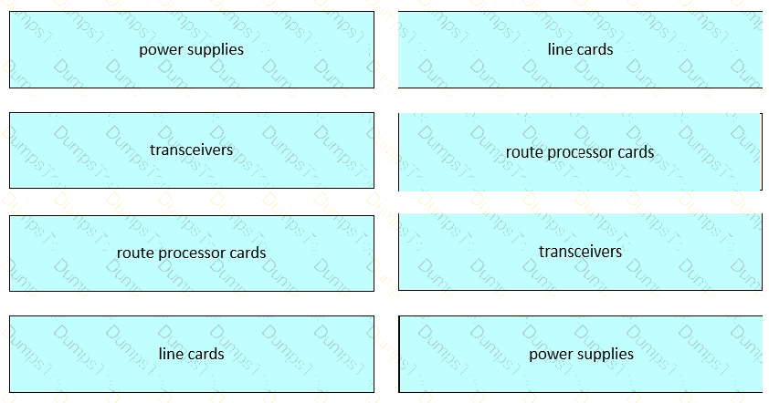 Refer to the exhibit. Drag and drop the names of the field-replaceable units from the left onto the corresponding letters on the image of the Cisco NCS 5500 Series modular router.