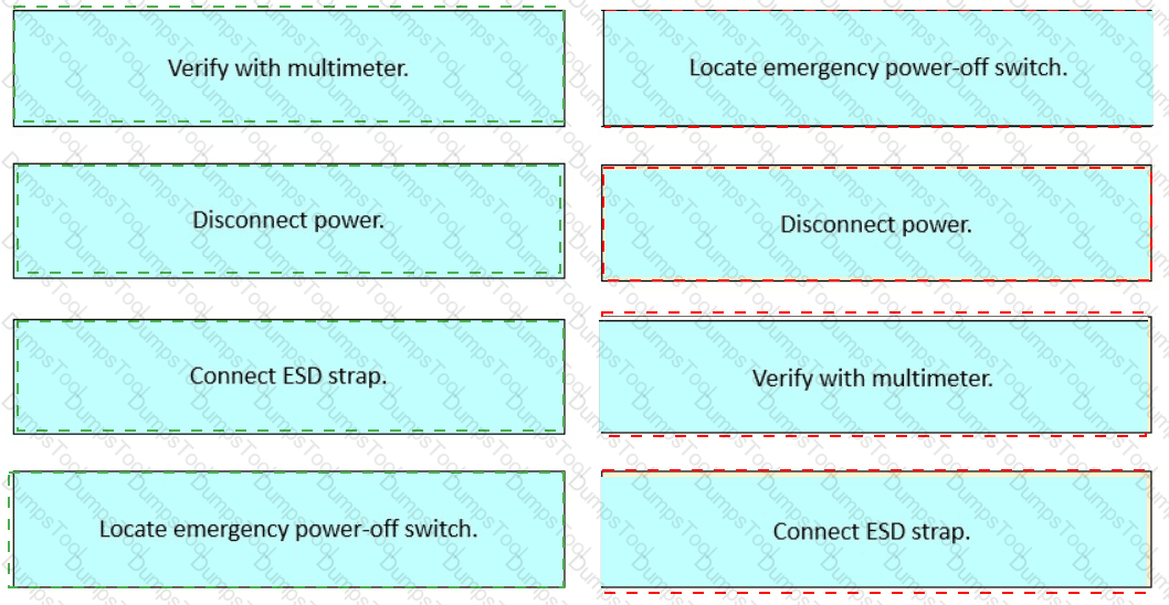 Drag and drop the safety actions that must be taken prior to beginning work into order on the right for working with electrical equipment.