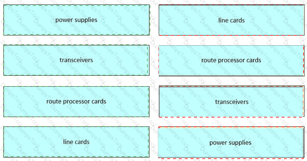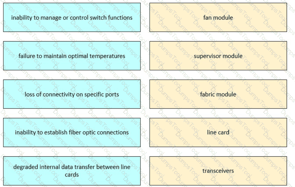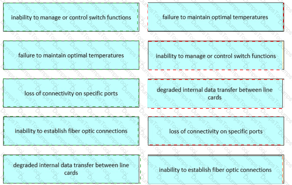 Drag and drop the failures from the left onto the responsible devices in the MDS field-replaceable unit on the right.