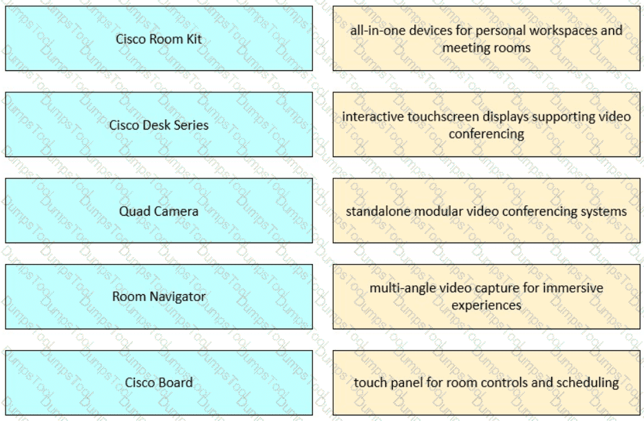 Drag and drop the Cisco collaboration endpoints from the left onto the corresponding descriptions on the right.