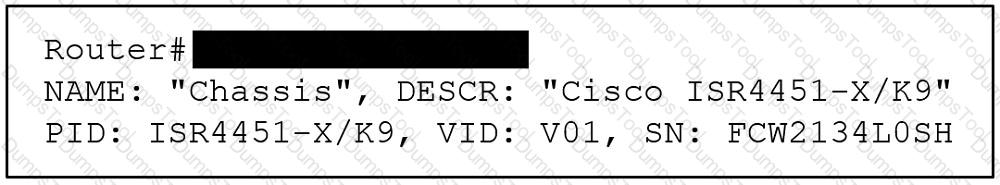 Refer to the exhibit. Which CLI show command identifies the serial number on a router?