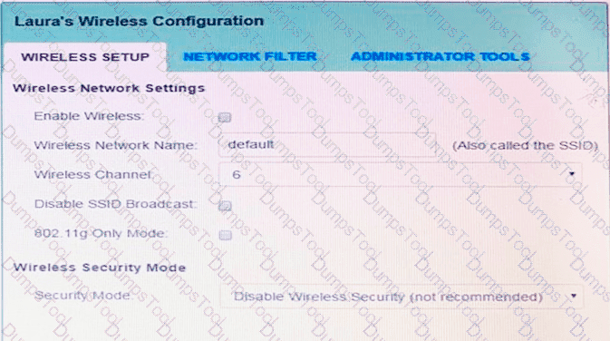Laura, a customer, has instructed you to configure her home office wireless access point.