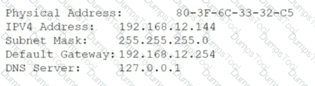 The technician generates the display shown below utilizing ipconfig /all.