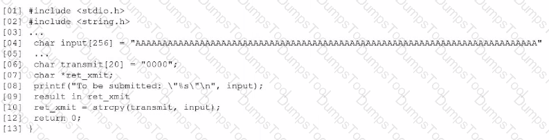 Which of the following is the vulnerable line of code that must be changed?