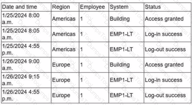 A company’sSIEMis designed to associate the company’sasset inventorywith user events. Given the following report: