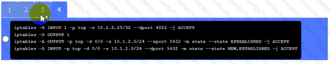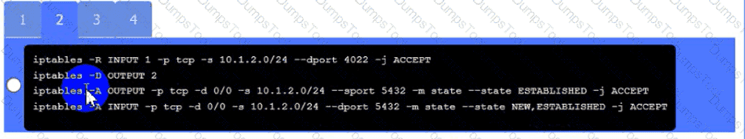 • The PostgreSQL server must only allow connectivity in the 10.1.2.0/24