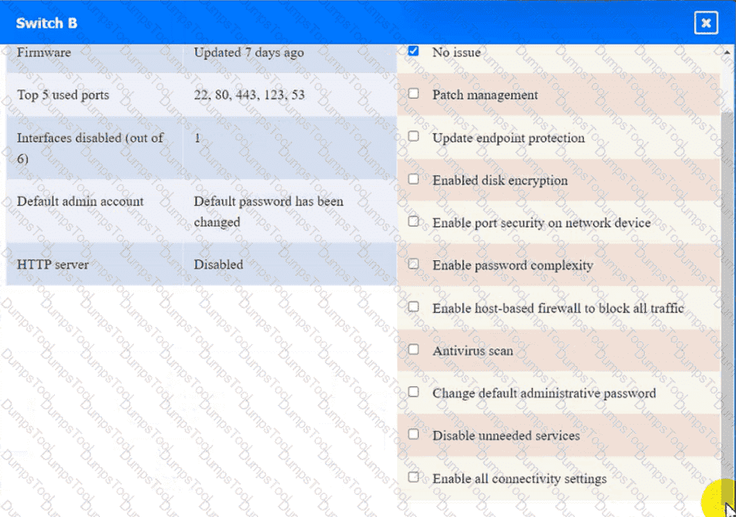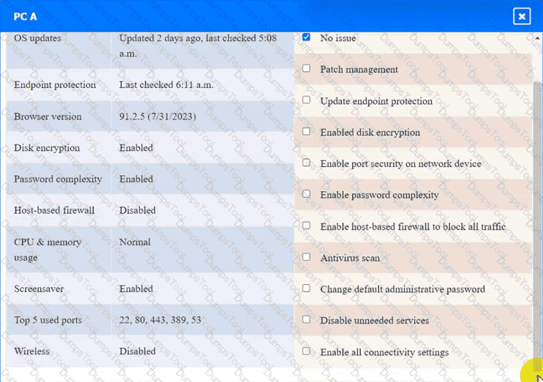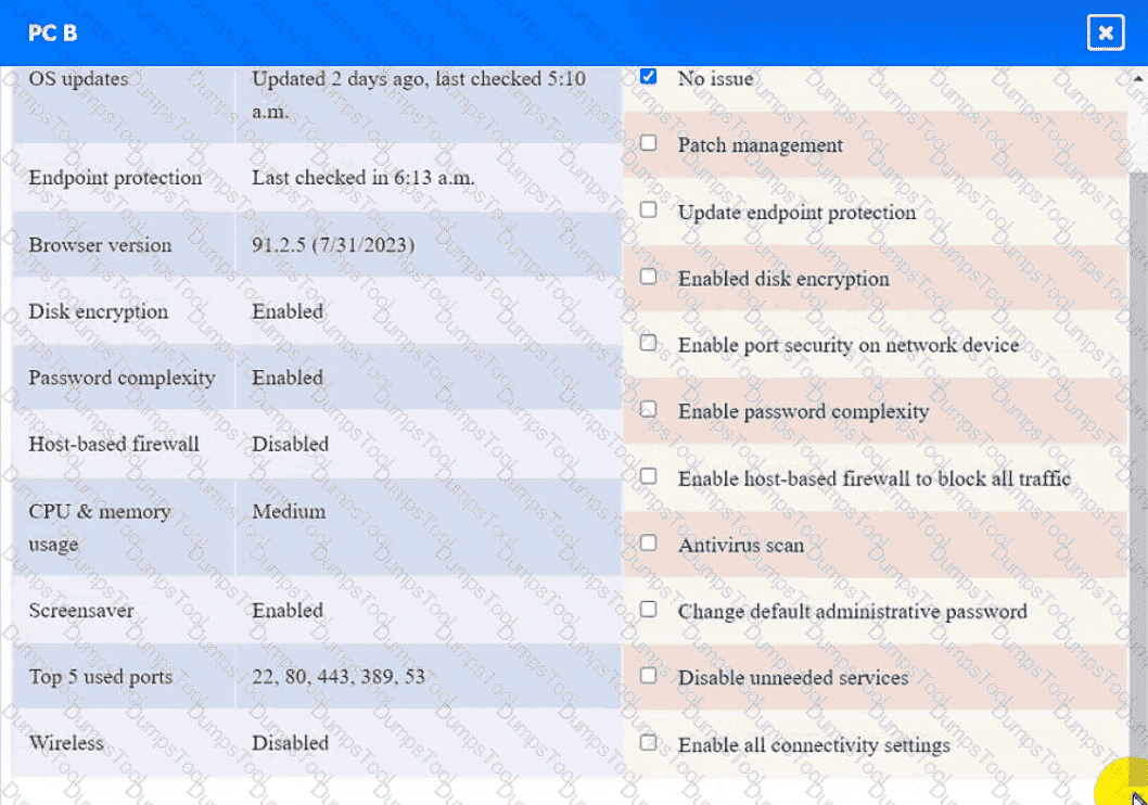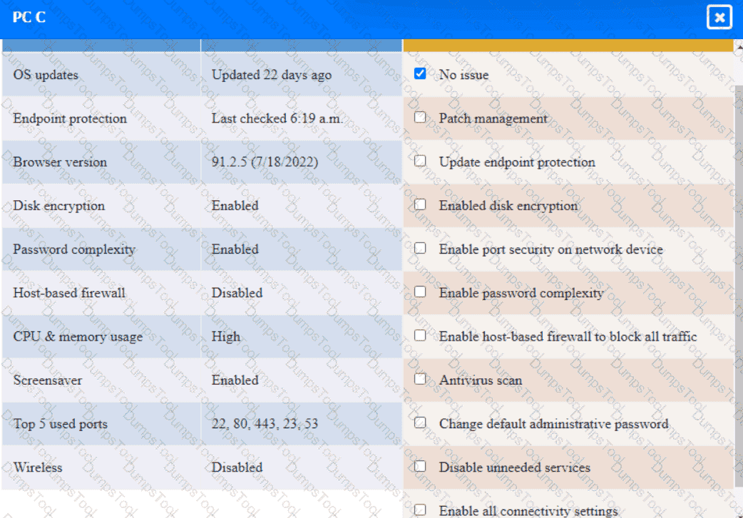 Click on the various workstations and network devices to review the posture assessment results. Remediate any possible issues or indicate that no issue is found.