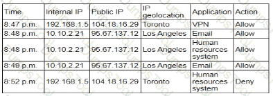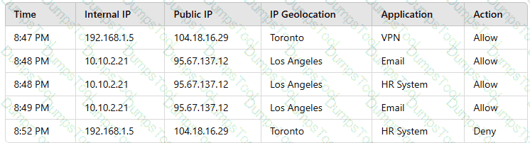 A user reports application access issues to the help desk. The help desk reviews the logs for the user: