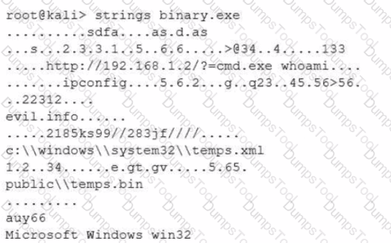 After a cybersecurity incident, a security analyst was able to collect a binary that the attacker used on the compromised server. Then the analyst ran the following command: