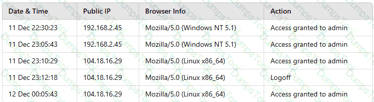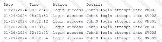 A security analyst is reviewing the following log: