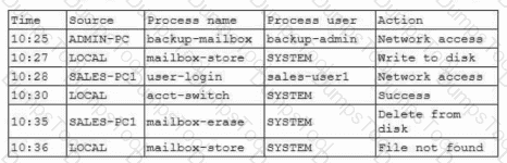 While investigating an email server that crashed, an analyst reviews the following log files: