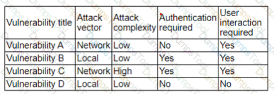 A company recently removed administrator rights from all of its end user workstations. An analyst uses CVSSv3.1 exploitability metrics to prioritize the vulnerabilities for the workstations and produces the following information: