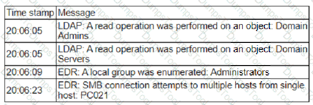 A security analyst is reviewing events that occurred during a possible compromise. The analyst obtains the following log: