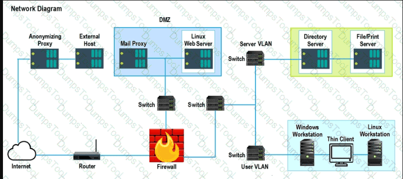 The Linux Web Server, File-Print Server and Directory Server are draggable.