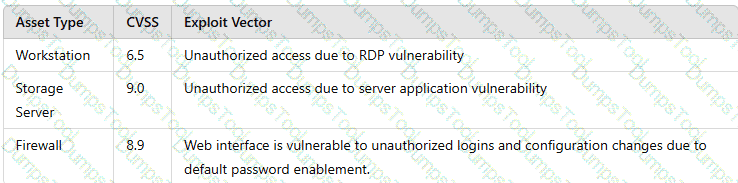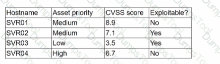 A security analyst is reviewing a recent vulnerability scan report for a new server infrastructure. The analyst would like to make the best use of time by resolving the most critical vulnerability first. The following information is provided: