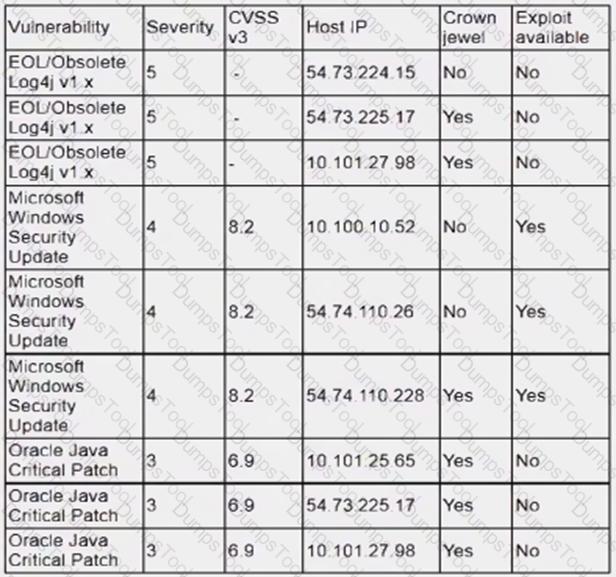 An analyst is reviewing a vulnerability report for a server environment with the following entries: