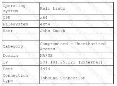 The company's IDS has reported an anomaly. The cloud engineer remotely accesses the cloud instance, runs a command, and receives the following information: