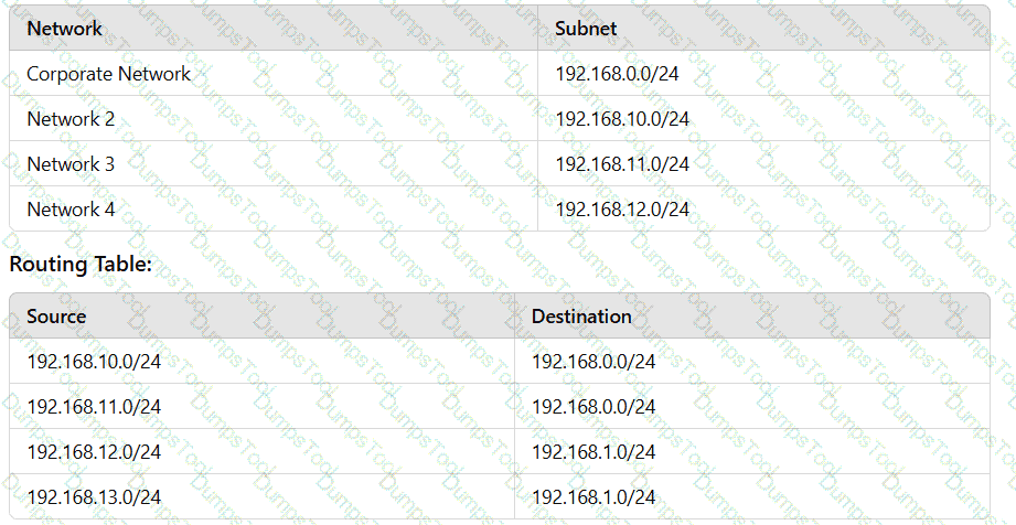 An administrator configures three subnets to the corporate network. All servers should communicate with the main corporate network and access the internet. The administrator creates the following configurations:
