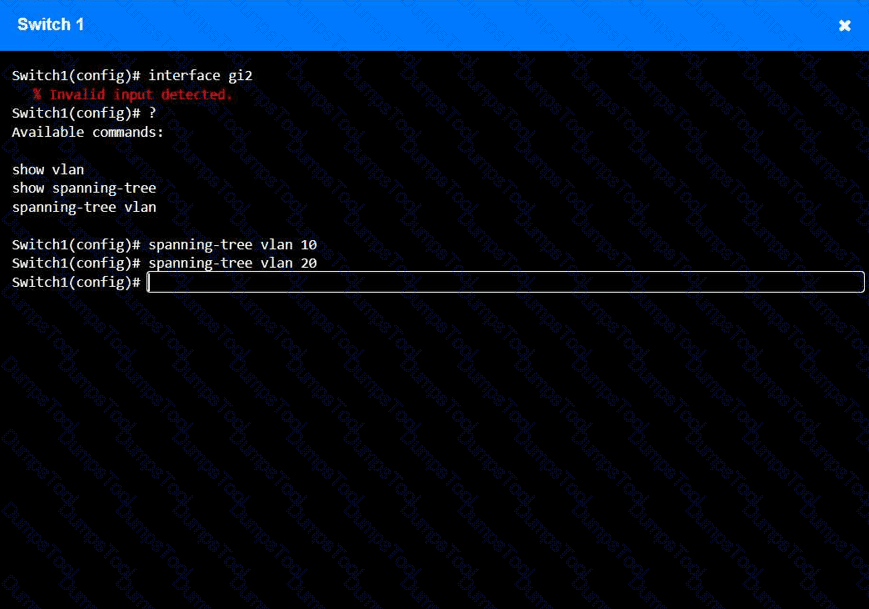Switch 1 and Switch 2 are already in configuration mode. Type help to view a list of available commands.
