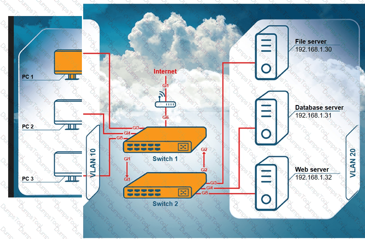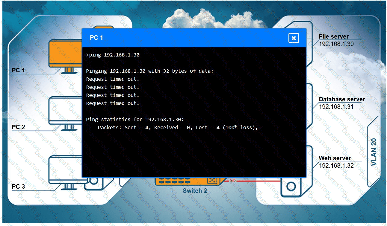 Configure Switch 1 and Switch 2 to remediate the employee ' s issue. Then, validate connectivity between PC 1 and the database server.