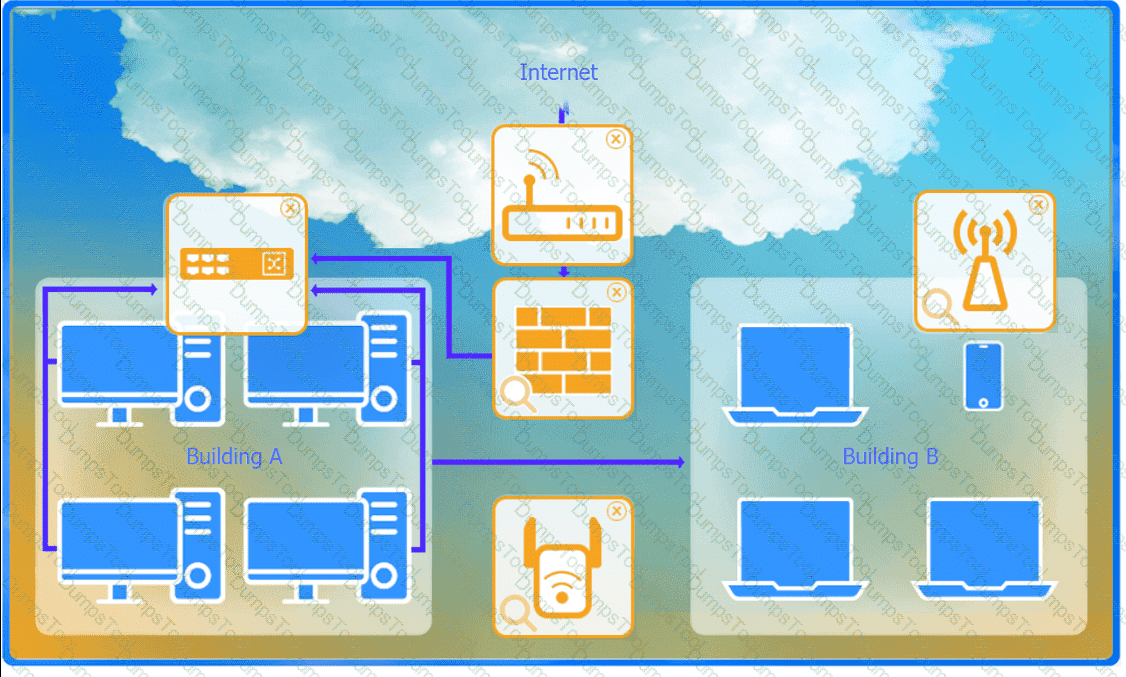 A network administrator has been tasked with configuring a network for a new corporate office. The office consists of two buildings, separated by 50 feet with no physical connectivity. The configuration must meet the following requirements: