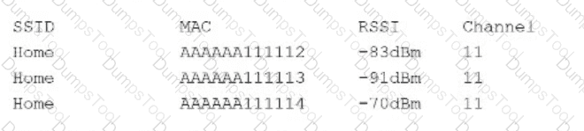 A network administrator needs to locate a specific AP using a spectrum analyzer to complete an 802.11ax device migration. Which of the following should display on the analyzer to locate the AP?