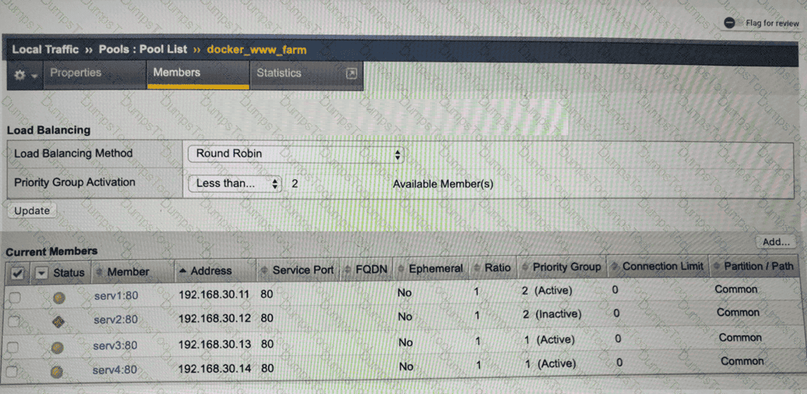 A BIG-IP pool is configured with Priority Group Activation = Less than 2 available members. The pool members have different priority groups and availability states. Which pool members are receiving traffic? (Choose one answer)