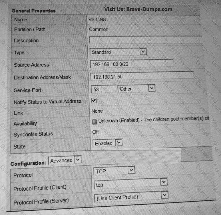 Which property change should the BIG-IP Administrator make in the Virtual Server to resolve this issue? (Choose one answer)