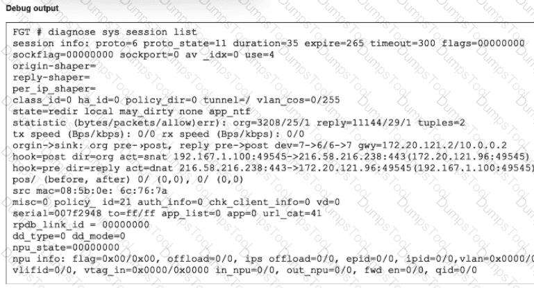 Which Iwo statements about FortiGate behavior relating to this session are correct? (Choose two.)