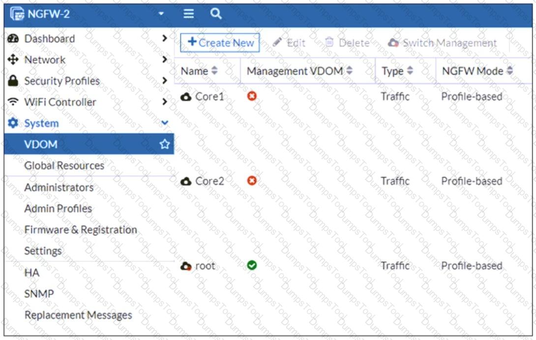 Refer to the exhibit, which shows the VDOM section of a FortiGate device.