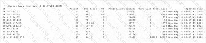 In this exhibit, which FDS server will the FortiGate algorithm choose?