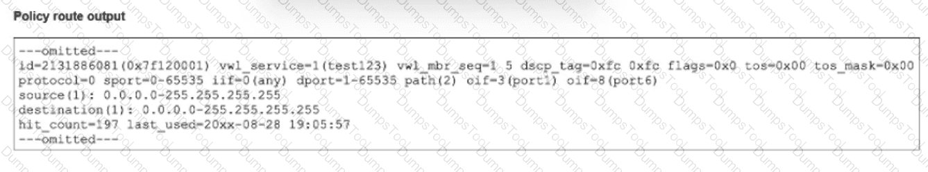 Refer to the exhibit, which shows the output of a policy route table entry.