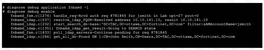Refer to the exhibit, which shows a partial output of a real-time LDAP debug.
