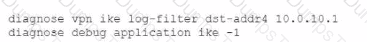 The VPN is not up. To diagnose the issue, the administrator enters the following CLI commands on an SSH session on FortiGate: