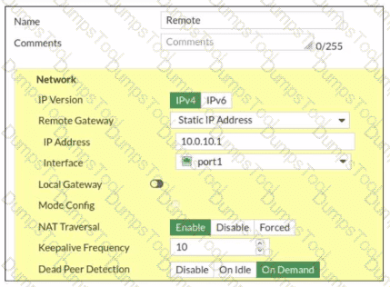 Refer to the exhibit, which contains a screenshot of some phase 1 settings.
