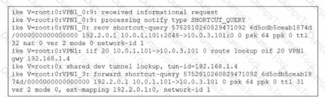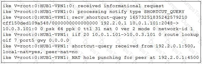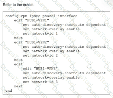 You update the spokes configuration of an existing auto-discovery VPN (ADVPN) topology by adding the parameters shown in the exhibit.
